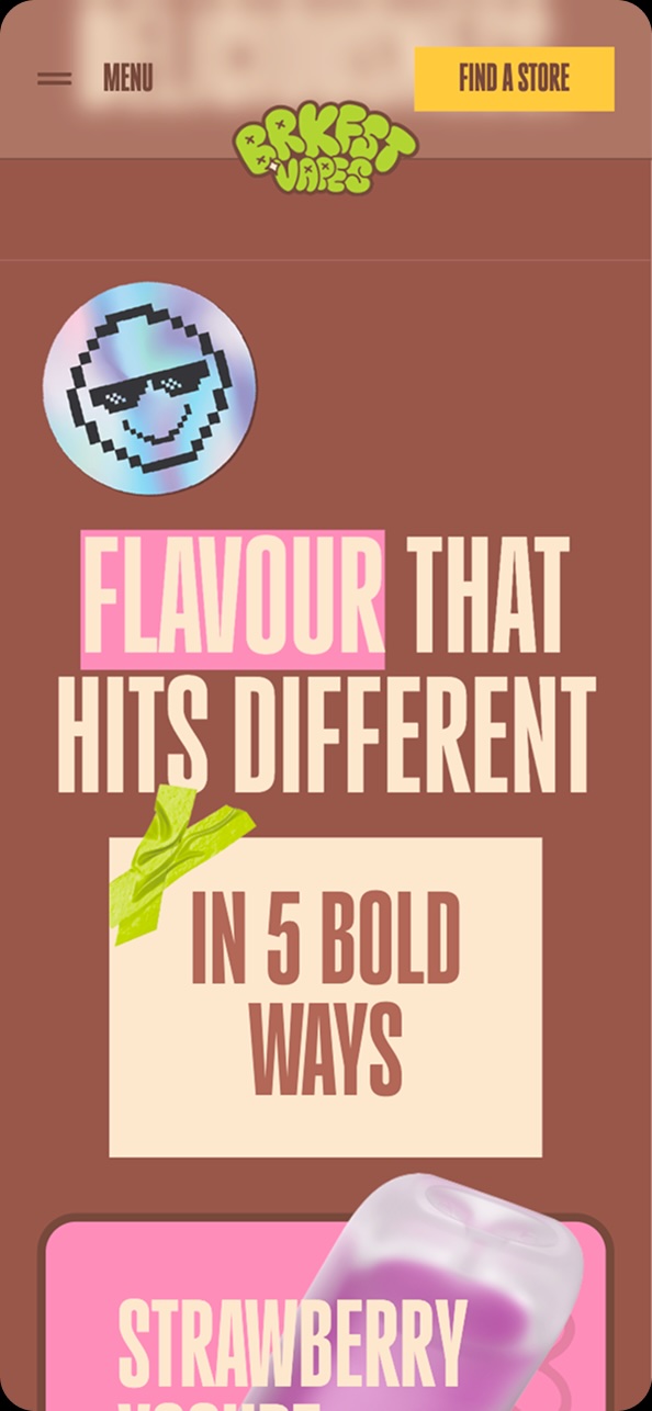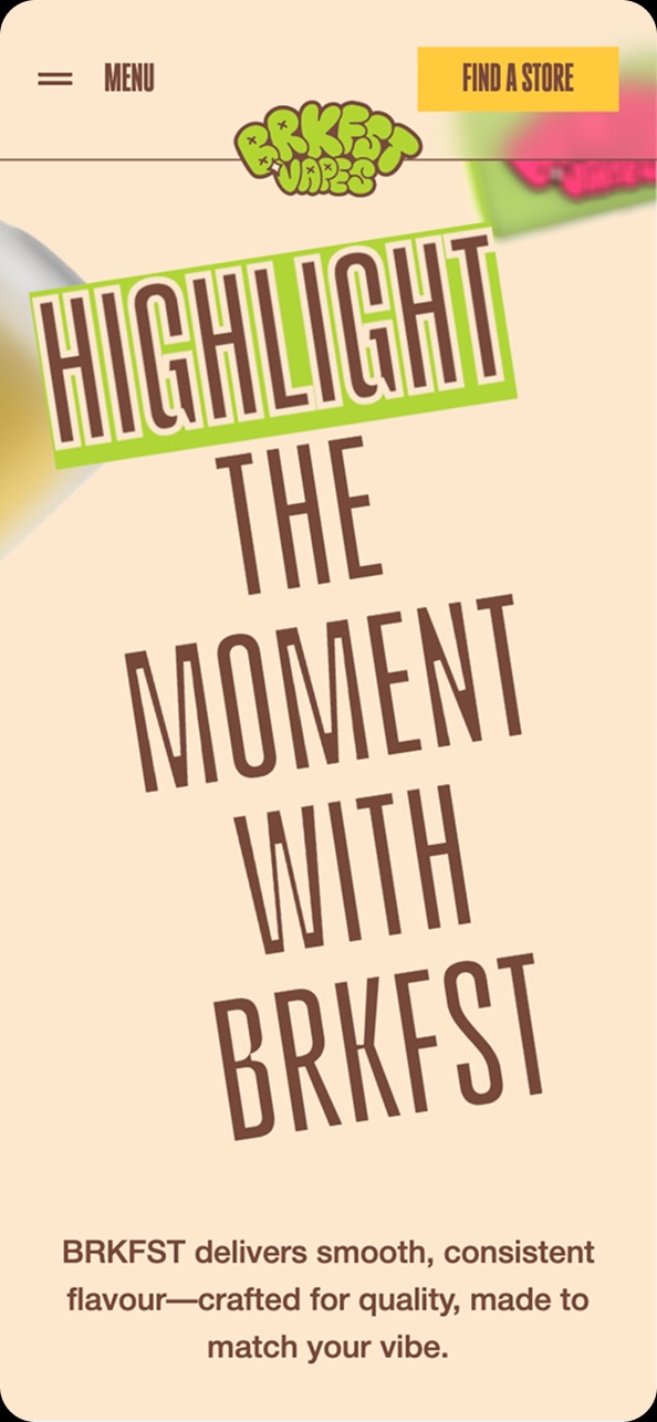 BRKFST is a bold, playful vape brand built to stand out in a crowded market. With the brand identity created by Grid Worldwide, Tecbot was brought in to translate that energy into a high impact digital experience. The website had to feel alive, expressive, and as dynamic as the people who use the product.